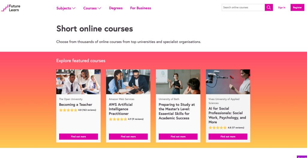 Apply online: https://www.futurelearn.com/courses?filter_category=open&filter_course_type=sponsored&filter_availability=started